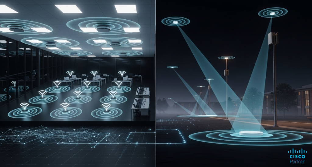 Indoor design usually prioritizes capacity, airtime efficiency, and predictable roaming across many overlapping cells. Outdoor design often prioritizes reach, controlled coverage geometry, and limiting interference across large open spaces. That shifts how you pick models and how you place them. Meraki MR46 and Meraki MR56 are typically used where client concurrency shapes the experience. Meraki MR76 is well-suited for coverage zones that must withstand exposure and support larger cell footprints.