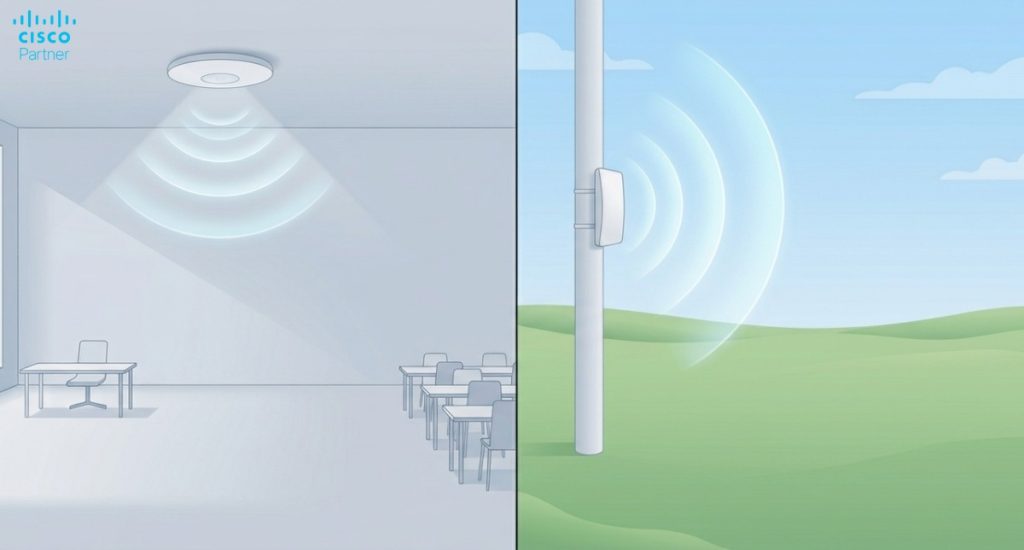 Indoor design usually prioritizes capacity, airtime efficiency, and predictable roaming across many overlapping cells. Outdoor design often prioritizes reach, controlled coverage geometry, and limiting interference across large open spaces. That shifts how you pick models and how you place them. Meraki MR46 and Meraki MR56 are typically used where client concurrency shapes the experience. Meraki MR76 is well-suited for coverage zones that must withstand exposure and support larger cell footprints.