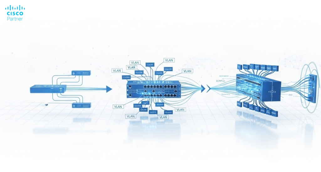 When a business network starts to grow, the switching layer usually feels that pressure first. A flat LAN becomes several VLANs. Voice, wireless, printers, cameras, badge systems, point-of-sale devices, and guest access all need cleaner separation. Once that happens, the next design decision comes quickly: should inter-VLAN traffic stay on the switch, or should every internal flow head upstream to a firewall or router first?
