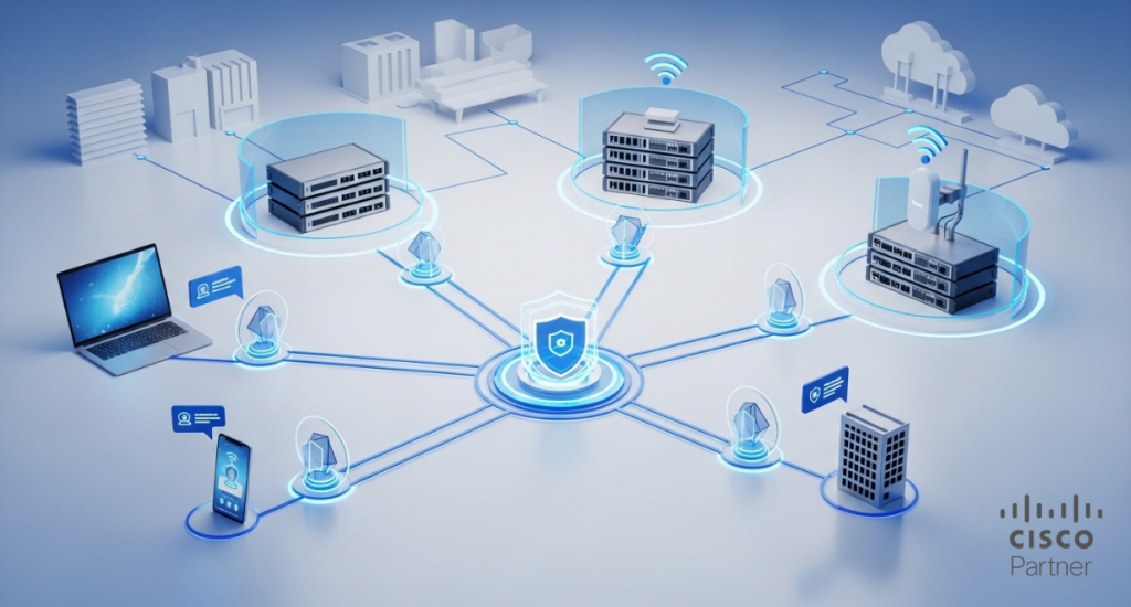 Cisco Meraki’s architecture supports distributed enforcement while maintaining centralized policy definition. MR wireless devices enforce access policies at connection time. MS switches apply segmentation and identity-driven controls within the wired layer. MX appliances enforce zone policy boundaries across WAN, VPN, and internal trust segments. Consistency across layers is what makes zero trust operational.